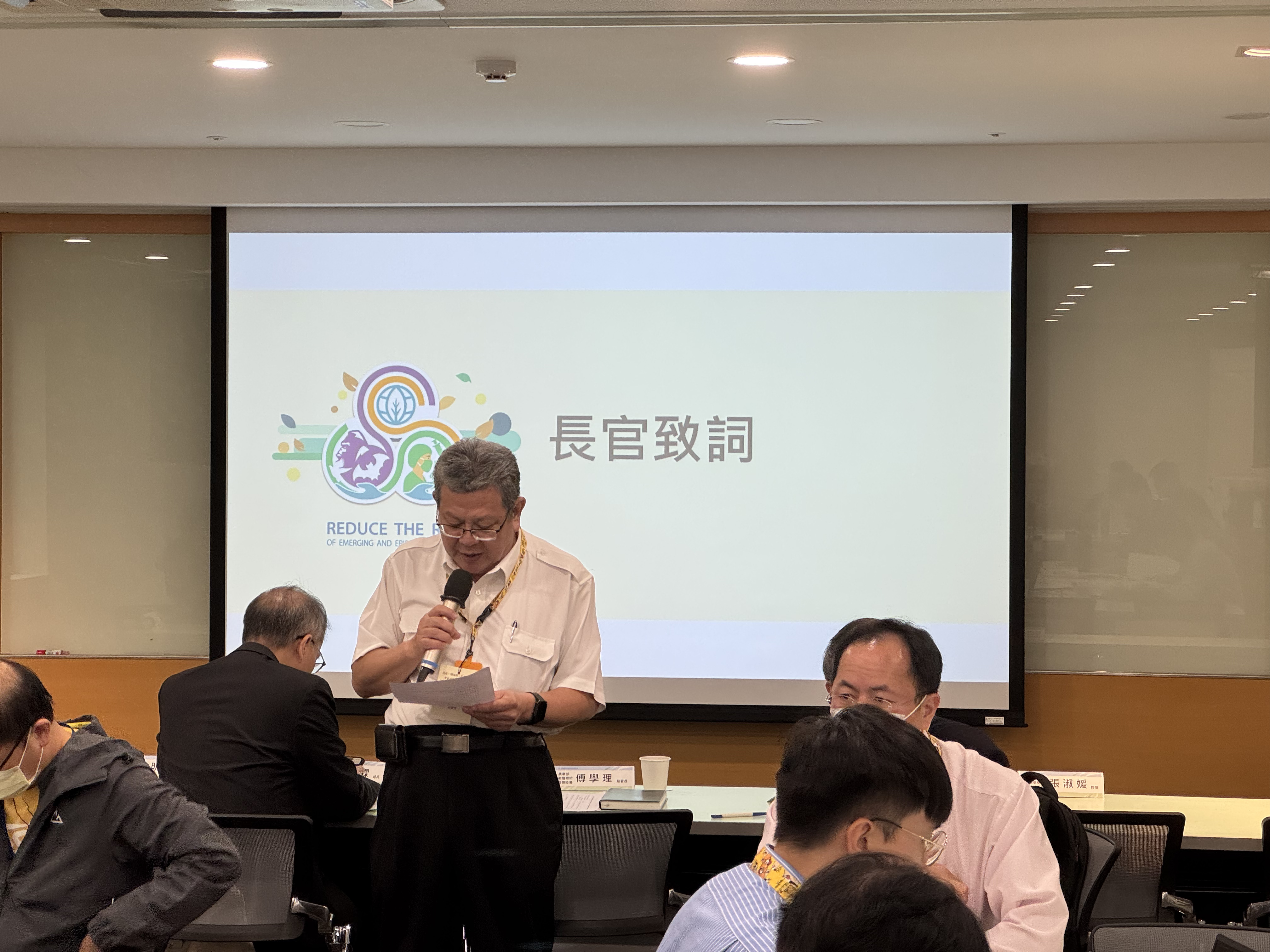 共識交流會首先由農業部動植物防疫檢疫署傅學理副署長致詞,強調為配合行政院核定之115至119年聯合行動方案,各研究計畫應與國家政策深度扣合,亦指出各單位須釐清計畫在「路徑二」中的定位,並凝聚管考共識與盤點績效指標,共同強化人畜共通疾病之防疫量能。接著由農業科技研究院陳正文副院長與本學會李宜映理事長講解方案核定重點、管考方向與本次交流任務。陳正文副院長說明農科院專案辦公室作為「路徑二」的核心幕僚,致力於資料彙整與跨部會協調,並強調各研究計畫應秉持「以終為始」的精神,將產出從技術研發提升至具備實戰能力的防疫行動與決策資源。李宜映理事長則建議應強化管考指標與政策目標的扣合,透過 AI 科技導入與模擬演習,建立「成果轉譯決策」的邏輯,將多元研究轉化為制度化的國家防疫量能。