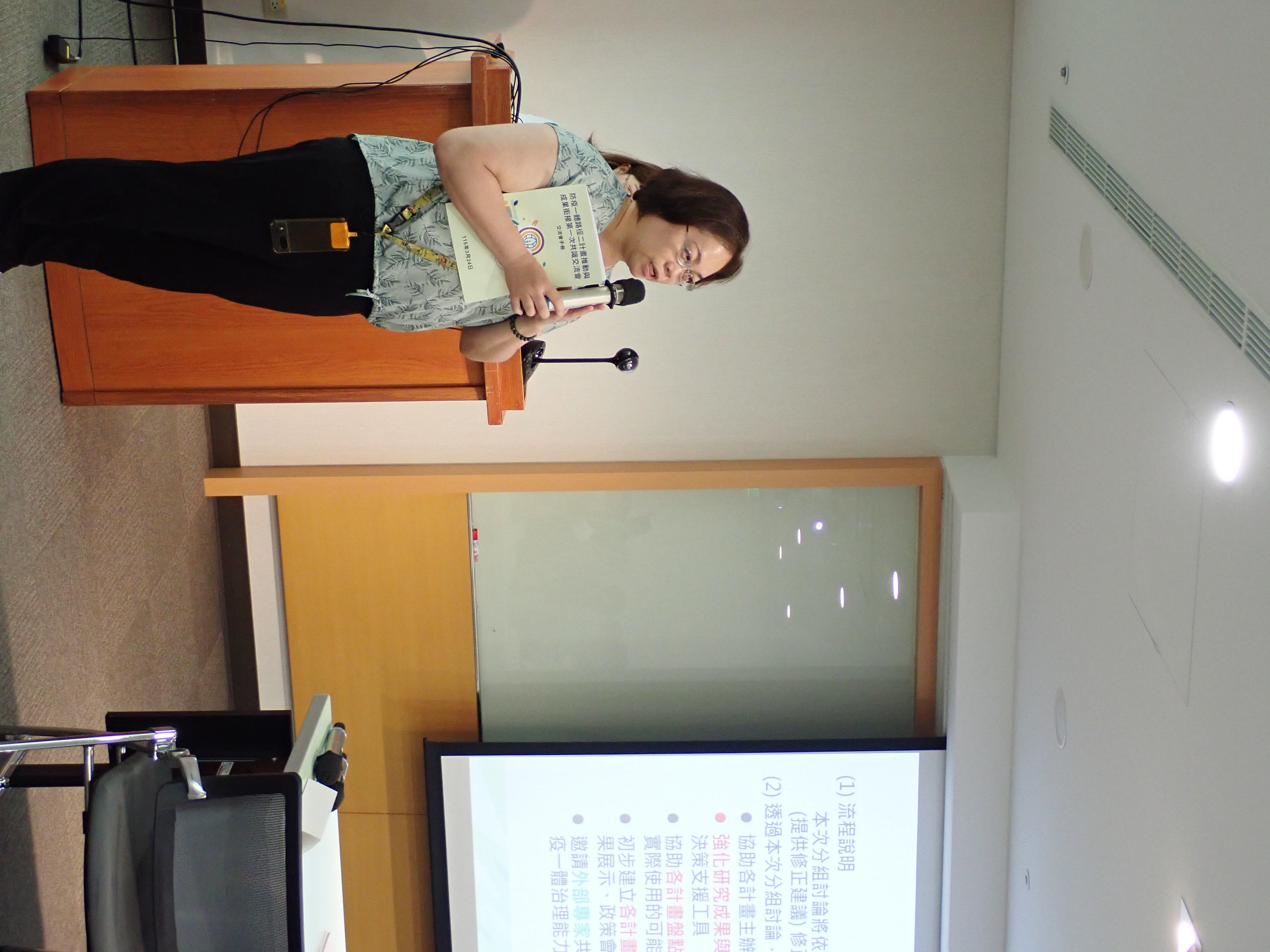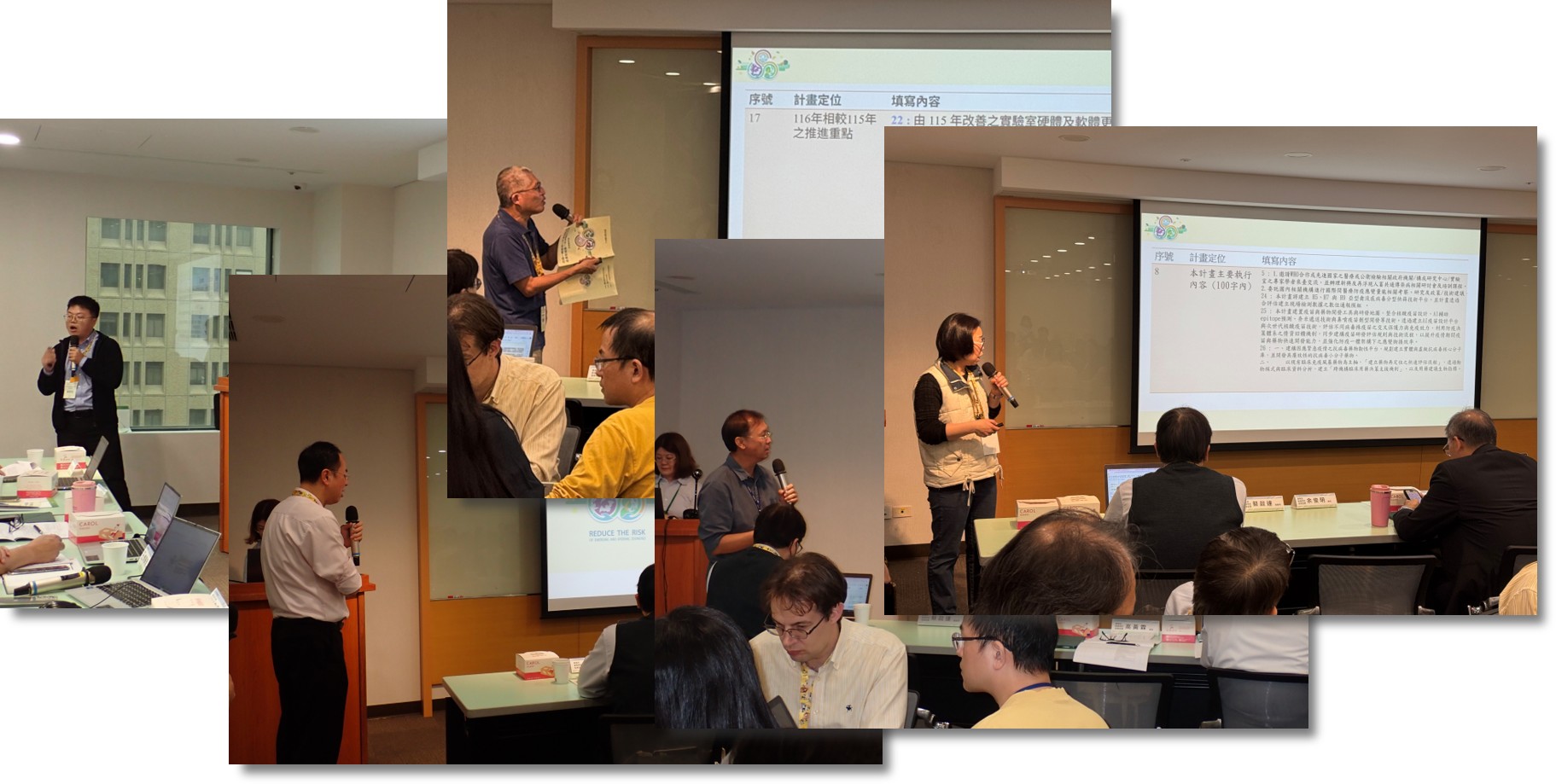 隨後邀請國立臺灣大學醫學院醫學檢驗暨生物技術學系張淑媛教授、國立臺灣大學公共衛生學院流行病學與預防醫學研究所方啟泰教授,以及國立中興大學張照勤副校長,針對各計畫撰寫內容提出專業建議。張淑媛教授建議精進病原檢測策略、強化 AI 預測模型之驗證與執行流程,並優化污水監測之點位選定與監測頻率。方啟泰教授強調應導入 AI 提升國際疫情監測之即時性,透過演習辨識防疫破口,並將唐菖蒲伯克氏菌產生的邦克列酸與黴菌毒素列為跨動植物與人類監測之重點。張照勤副校長則主張應引進國際關鍵技術以強化預警系統、明確定位計畫在畜產或野生動物防疫之角色,並建議將抗藥性監測與有機農業風險納入植物防疫體系,以厚實「防疫一體」之實務量能。