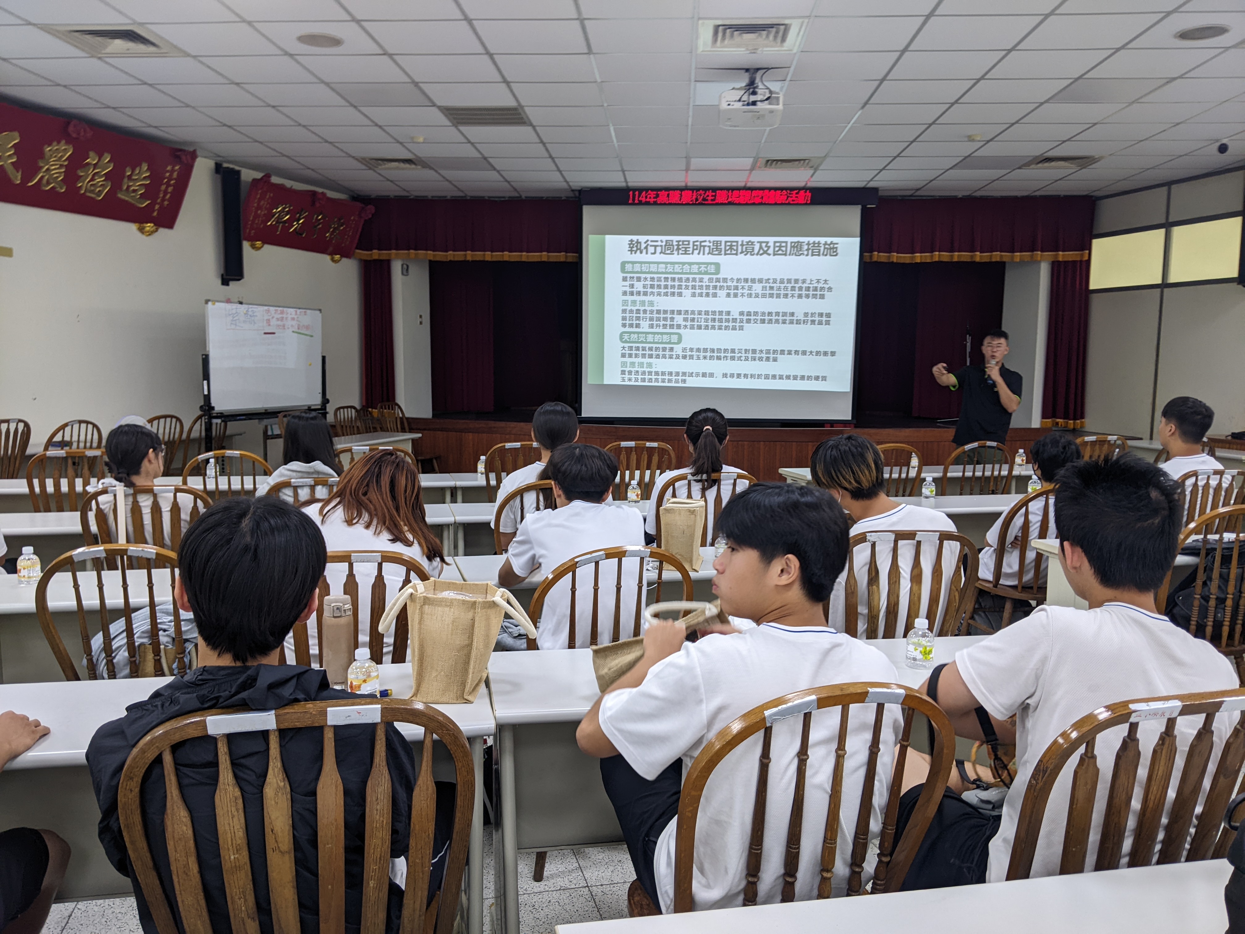 由鹽水區農會講師介紹近年推動雜糧輪作的策略與輔導經驗。在講師的帶領下,學生認識鹽水地區的雜糧輪作模式,了解農會如何協助農民穩定生產與行銷。面對學生提出的農民收益與氣候挑戰問題,講師也逐一回應,現場互動熱烈。並參觀鹽水區農會產銷部,展示多項由農會開發的加工產品與其他國產農產加工商品,師生們對農會產銷超市的環境美輪美奐、產品種類多元印象深刻,認為農會通路展現出新的面貌與活力。
