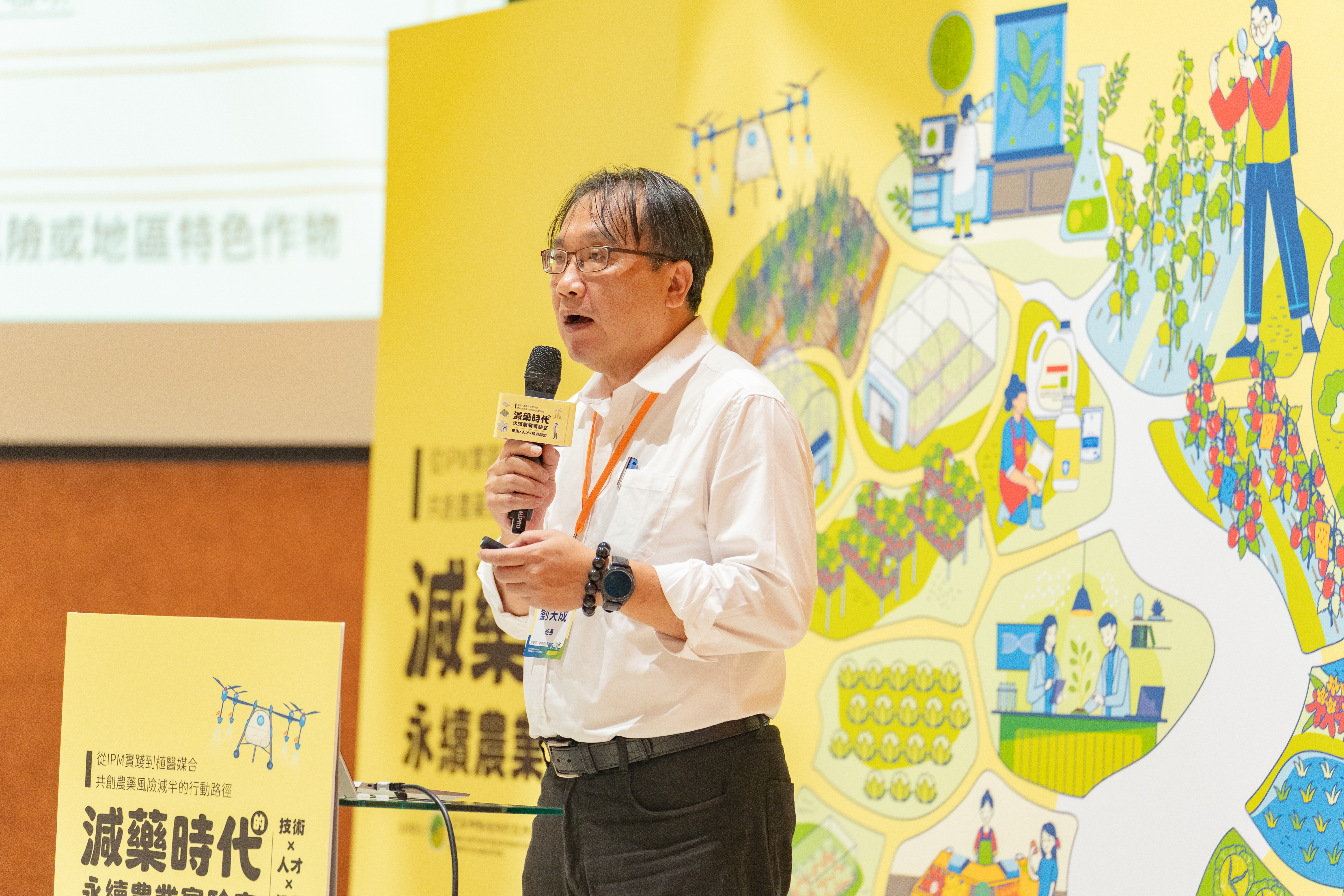 活動首先由防檢署劉天成組長說明政策推動成果與核心思維。十年減半政策以「降低風險、強化監測、推動替代、提升專業」為四大核心策略,透過優先汰除劇毒農藥、建立監測與殘留檢驗體系、推廣生物農藥與免登記植物保護資材,以及強化教育訓練與專業制度,逐步翻轉臺灣的用藥結構。