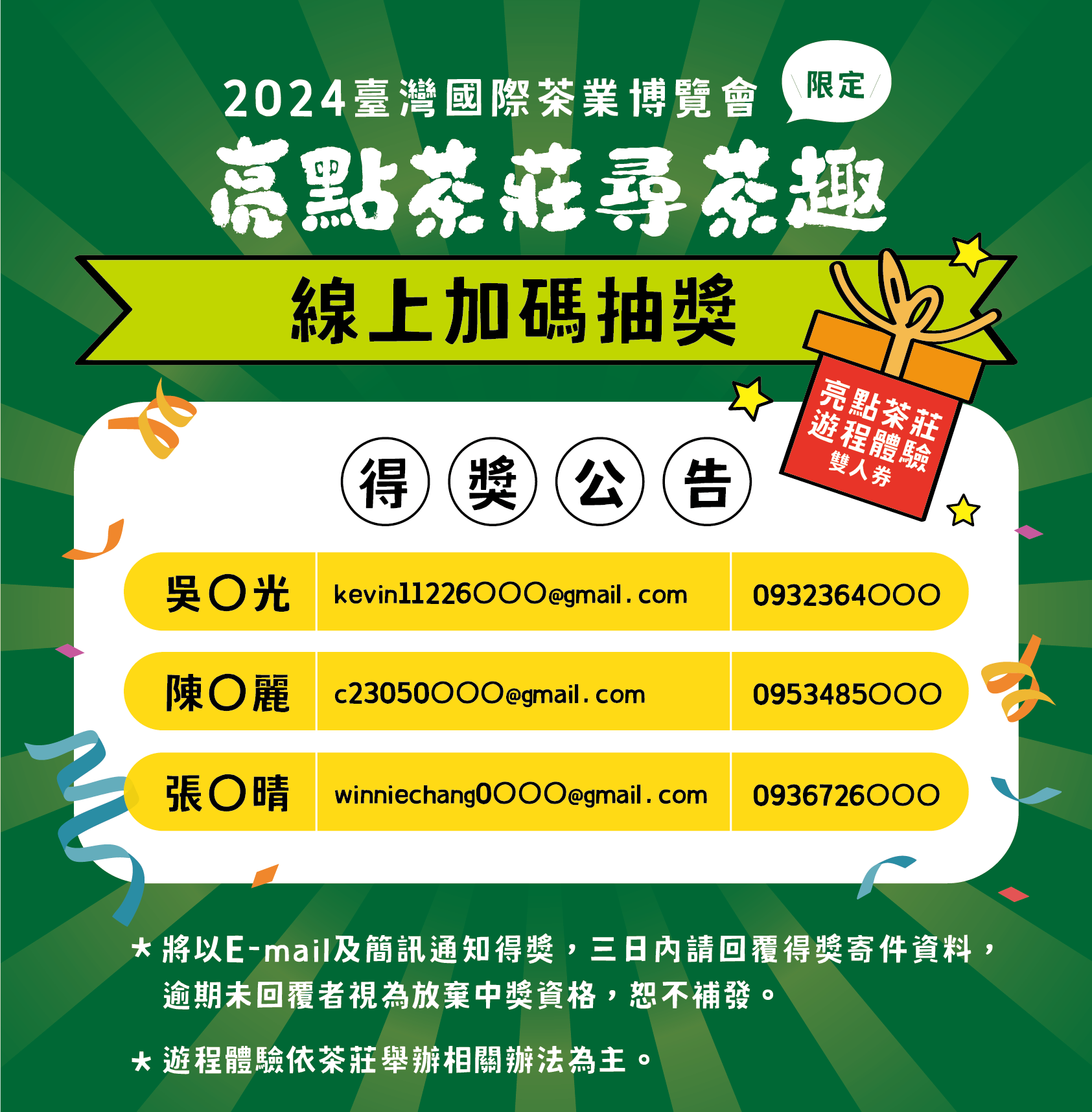 感謝大家踴躍參加【加碼抽獎】茶莊冒險抽獎Chill活動,