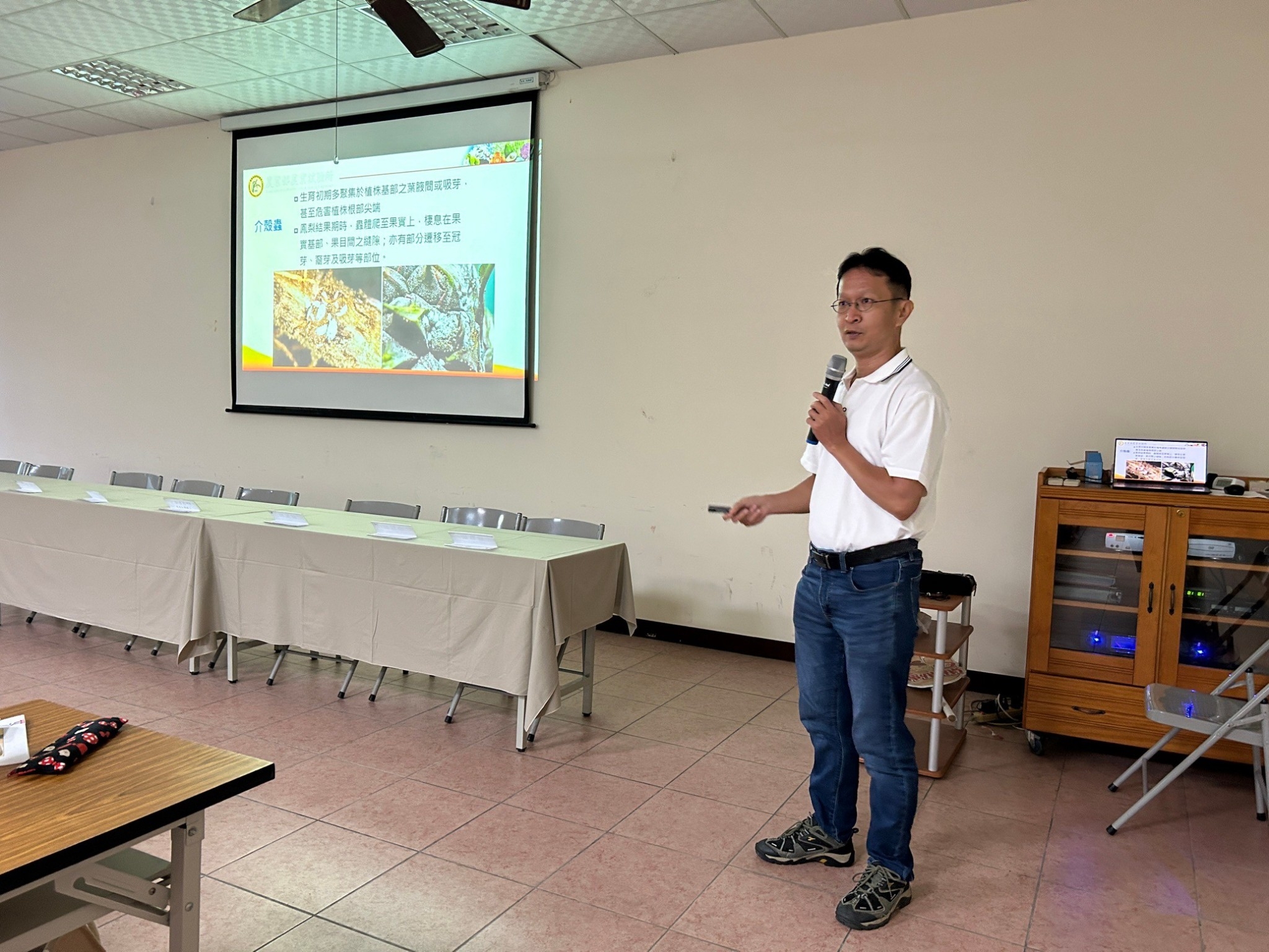 在病蟲害防治方面,嘉義分所黃守宏副研究員深入講解了外銷鳳梨面臨的病蟲害挑戰,並以鳳梨小果腐敗病為例,詳細說明了病源入侵的方式及有效的防治手段。他強調在採收前後的作業流程皆需謹慎管理,以確保果實在外銷過程中的健康與品質。