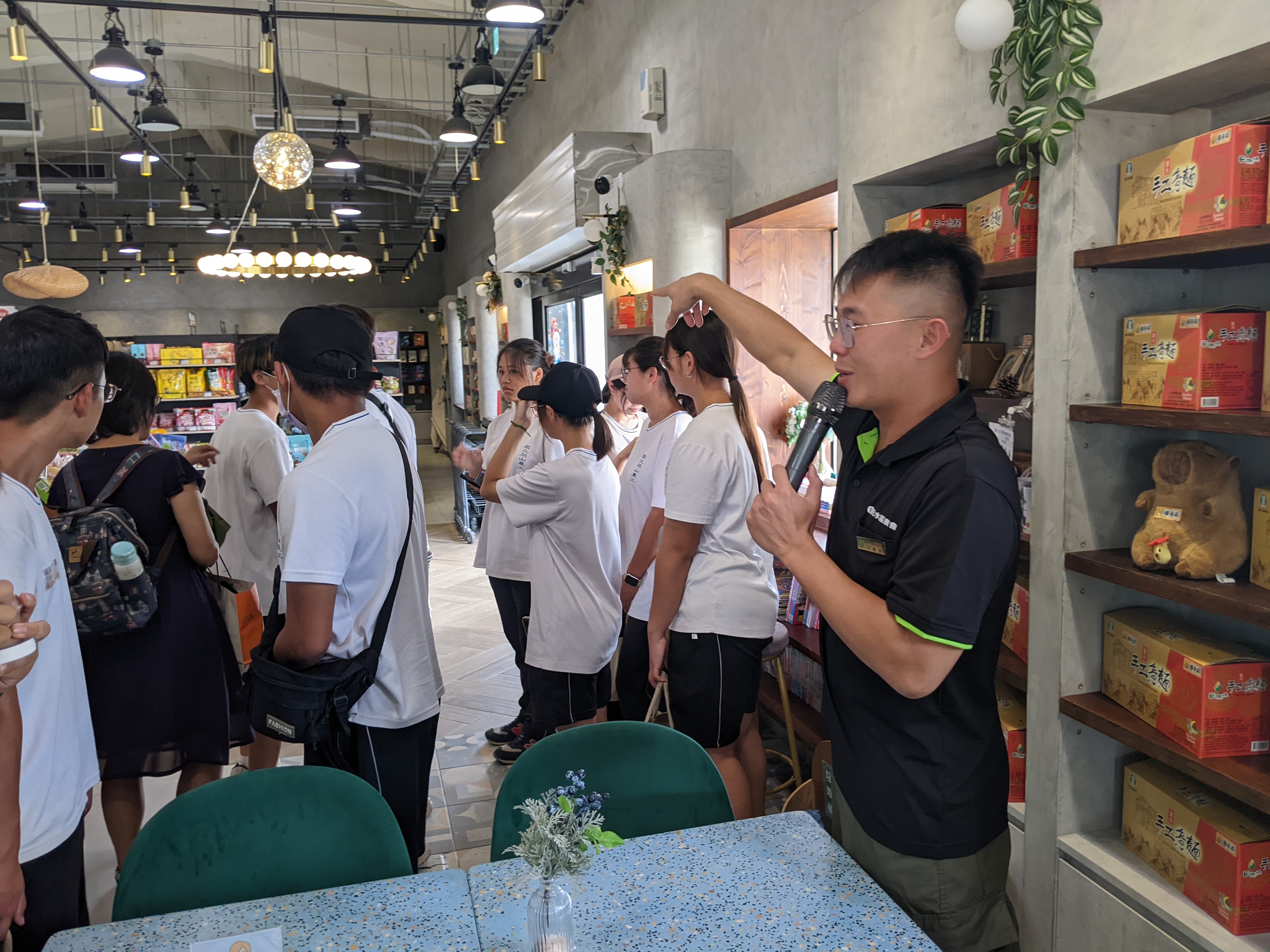 由鹽水區農會講師介紹近年推動雜糧輪作的策略與輔導經驗。在講師的帶領下,學生認識鹽水地區的雜糧輪作模式,了解農會如何協助農民穩定生產與行銷。面對學生提出的農民收益與氣候挑戰問題,講師也逐一回應,現場互動熱烈。並參觀鹽水區農會產銷部,展示多項由農會開發的加工產品與其他國產農產加工商品,師生們對農會產銷超市的環境美輪美奐、產品種類多元印象深刻,認為農會通路展現出新的面貌與活力。
