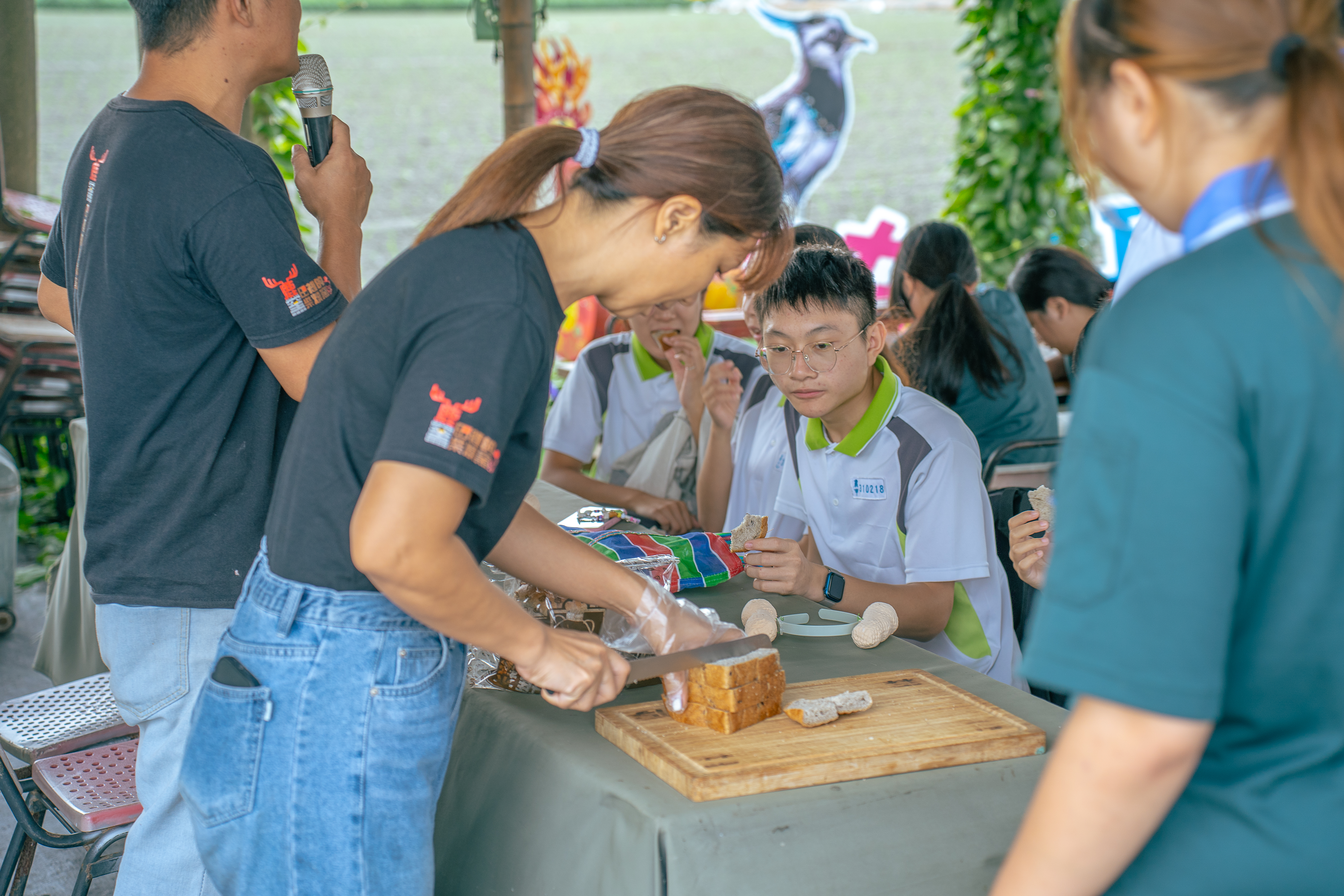 學生亦試吃以黑芝麻、黑豆等雜糧開發的養生吐司,成分單純、口感柔軟並帶淡淡芝麻香,展現鹿窯「在地雜糧入味」的創新精神。透過實際品嚐,學生更理解在地作物如何轉化為兼具營養與文化的烘焙產品。