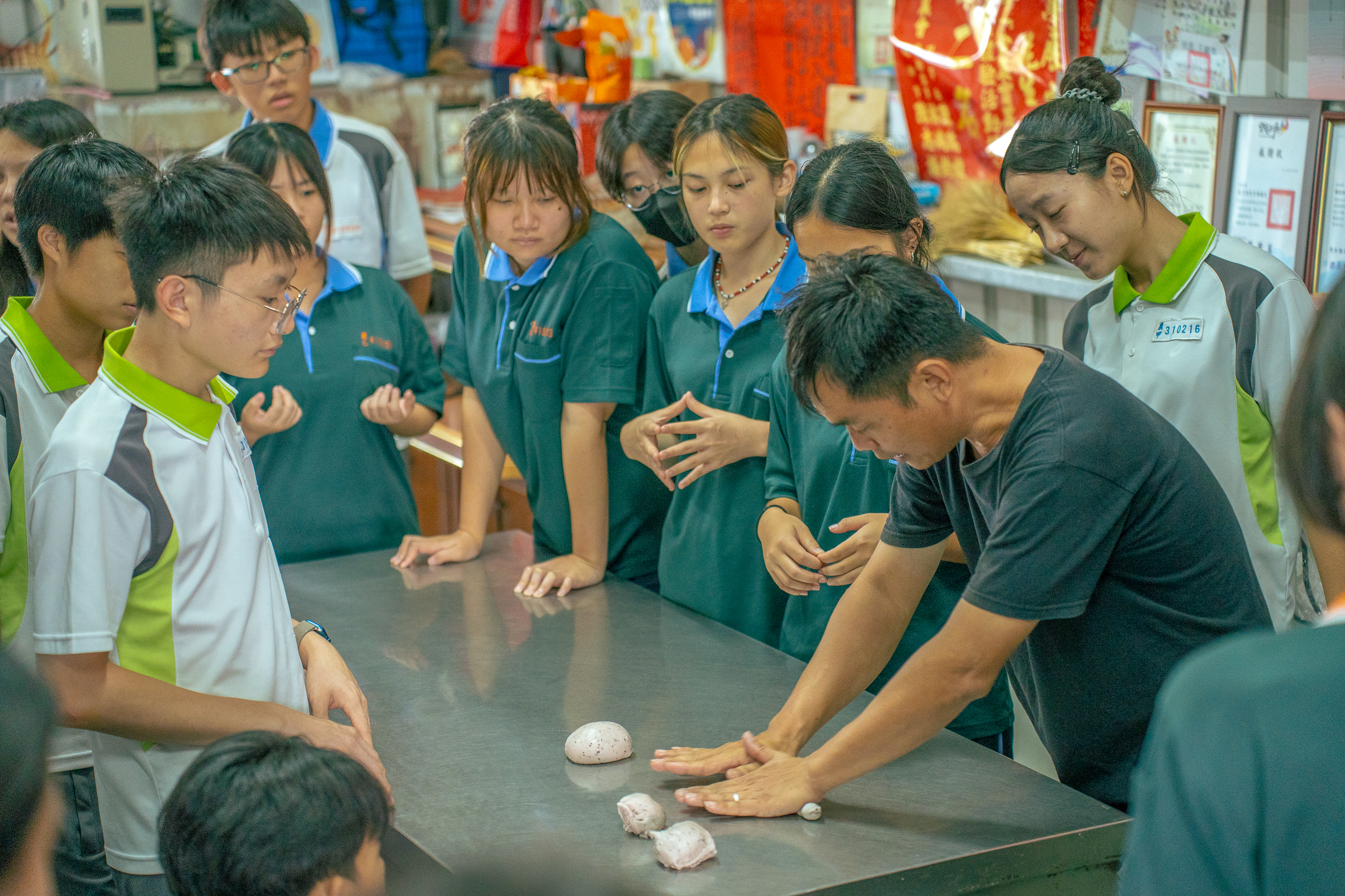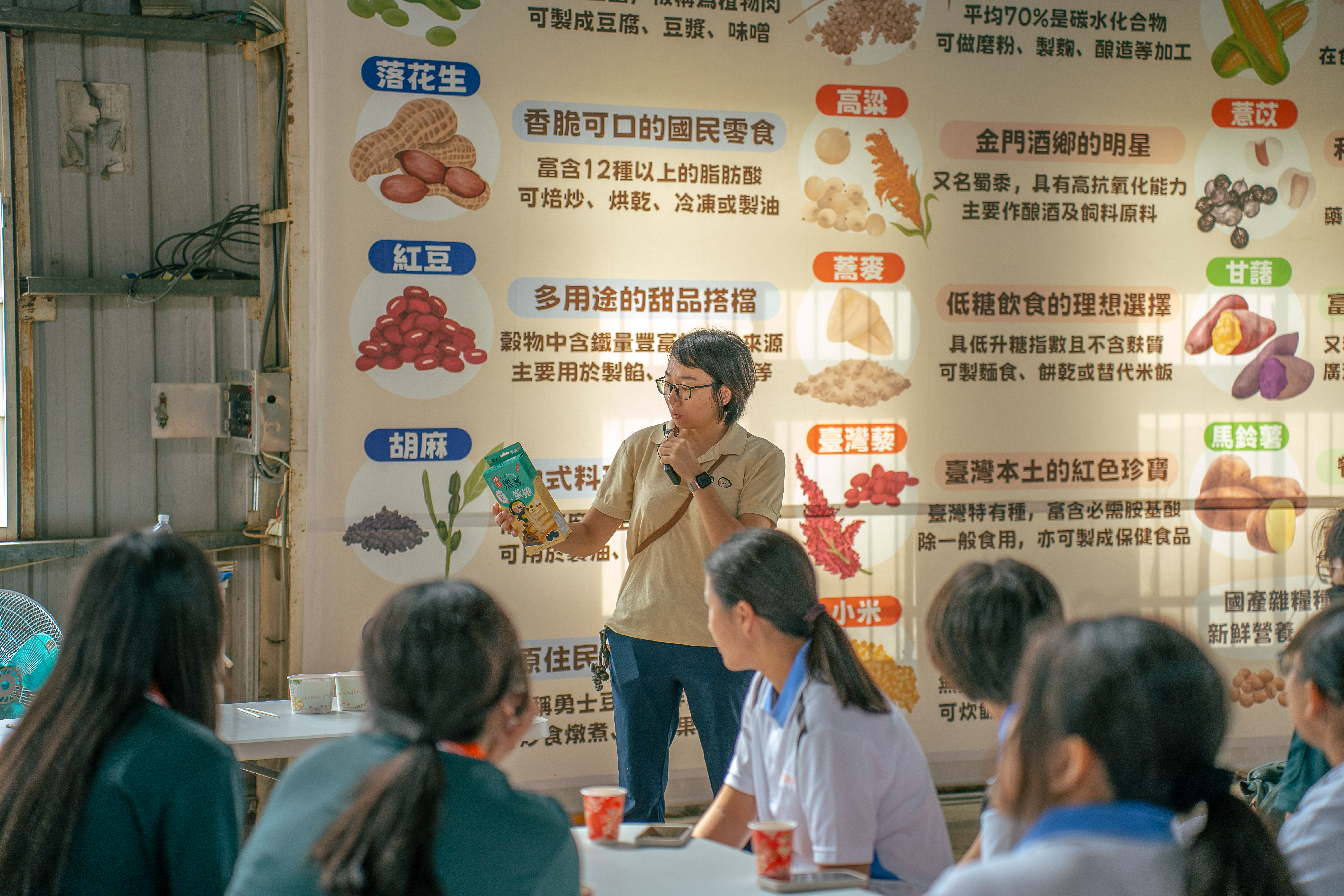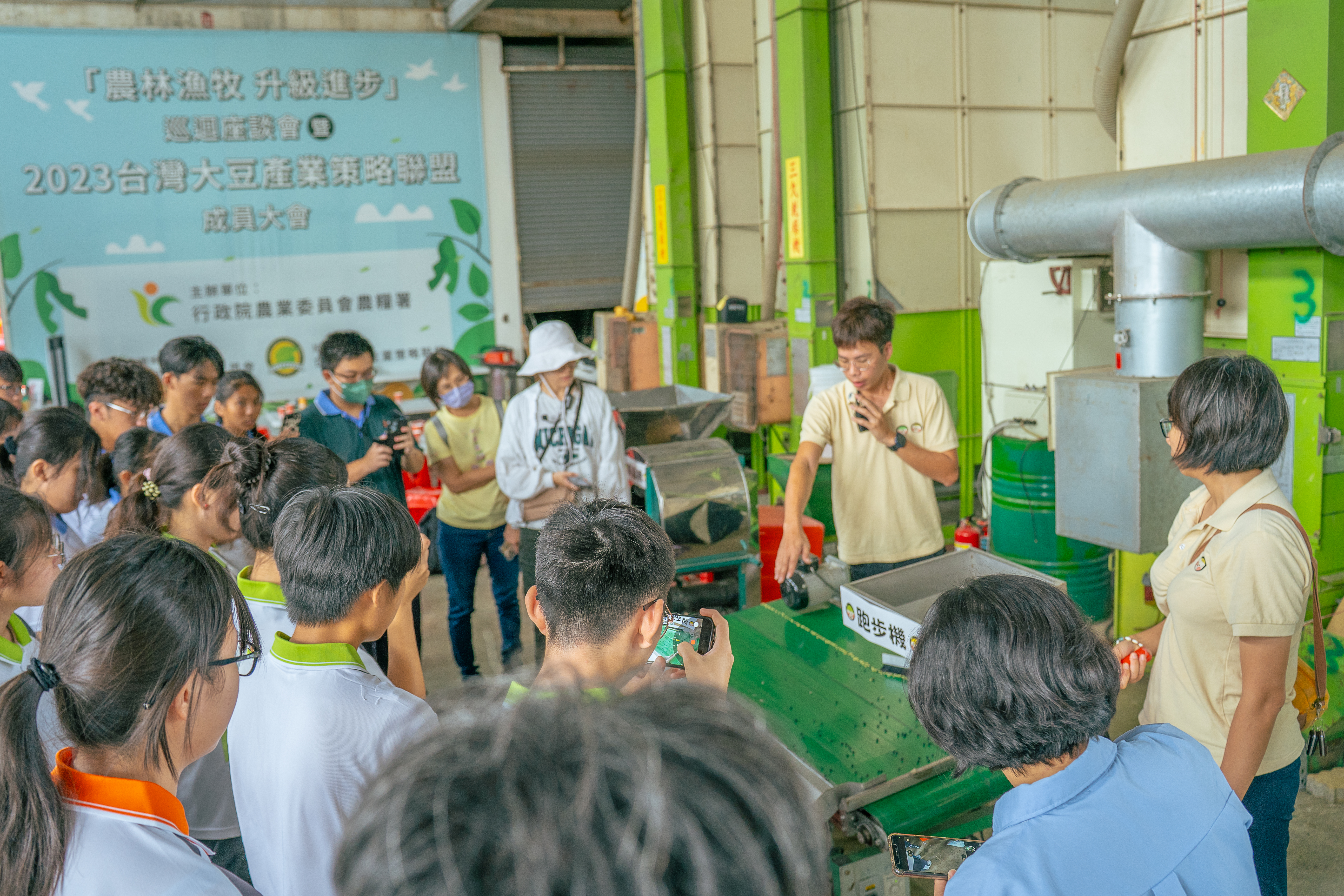 黑豆將軍以推廣國產大豆為核心,現場由蔡濰揚經理導覽,帶領學生從田間管理到加工鏈流程,認識黑豆與毛豆的品種特性、栽培要領及加工應用。講師以循序方式說明豆類生長階段與品種差異,並結合設備操作展示,使學生能將理論與實務結合。為提升導覽參與度,蔡經理臨時出題,鼓勵學生以手機搜尋豆類相關資料,從產量到東部產區、水庫警戒值等即時查證,使導覽兼具互動與知識性,啟發學生主動思考與探索。